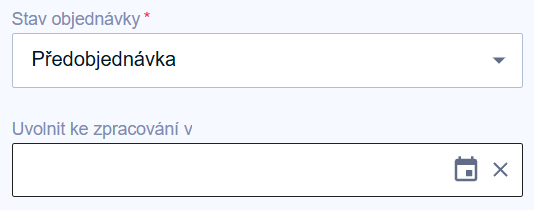 Pro objednávky ve stavech: Předobjednávka nebo Pozastavena lze zadat datum (pouze v budoucnosti), kdy MySkladon automaticky změní stav na Obdržena a objednávka bude normálně zpracována.