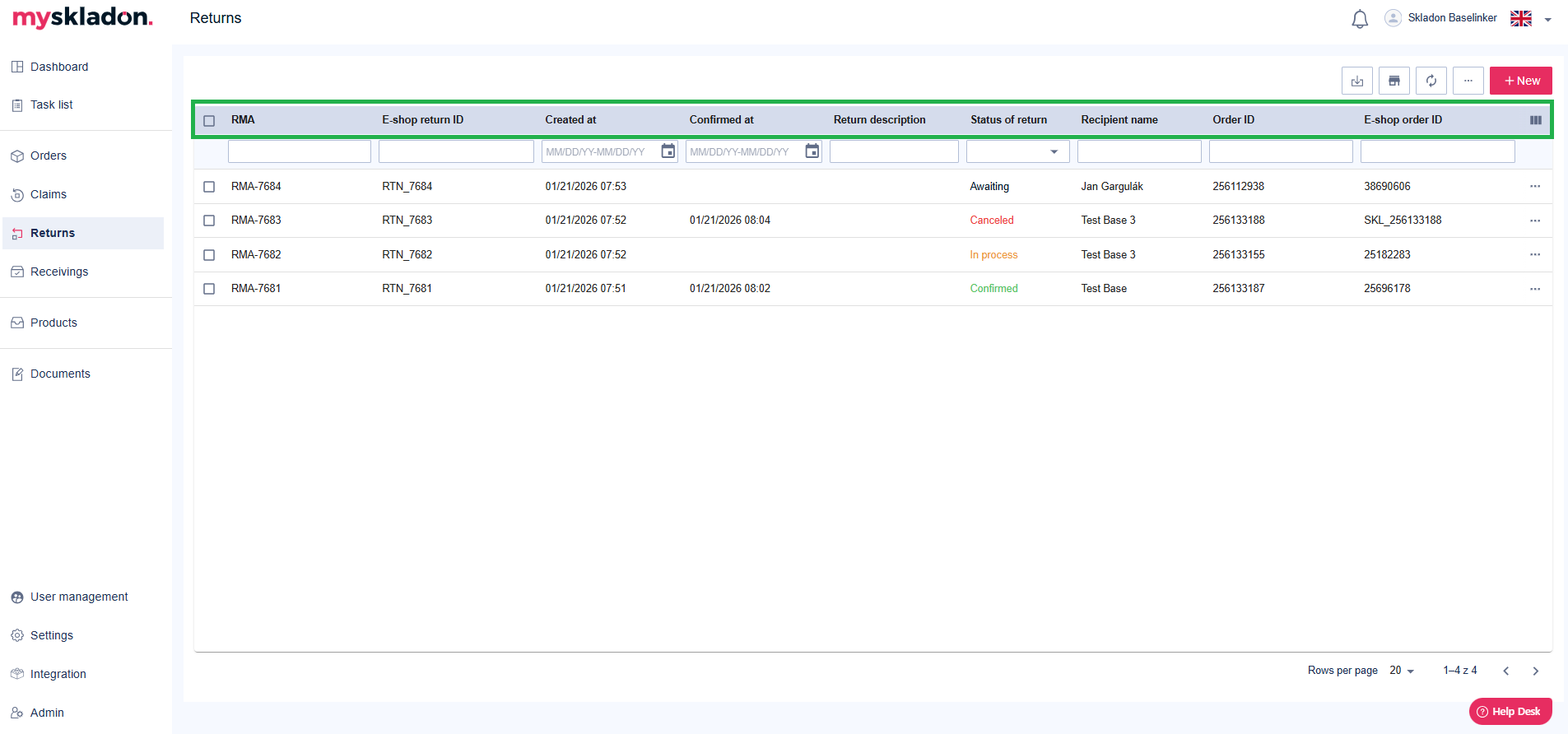 These are shipments that are returned to Skladon for various reasons. Returns can be initiated by both the customer and the carrier: