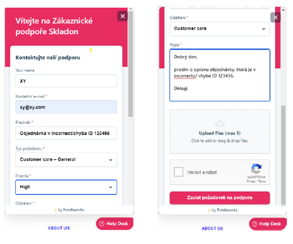 After filling in the form, click on the Zaslat požadavek na podporu button. This will create a new ticket in our customer portal.