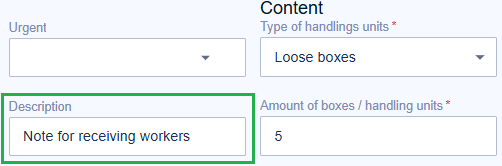 The text entered in this field is therefore sent to these carriers when ordering transport and is then displayed on the carrier's shipping label, see: Shipping label