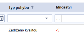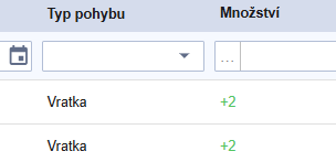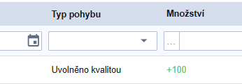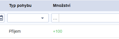 - Množství - počet jednotek produktu v daném skladovém pohybu (včetně znamének + / -)