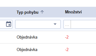 - mínusové hodnoty (-) jakmile jsou v objednávce potvrzené kusy a objednávka je ve stavu Na cestě.