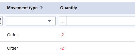 - negative values (-) as soon as the items in the order are confirmed and the order is in the On the way status.