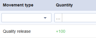 Uvolnění kvalitou představuje pohyb produktů, které byly dříve zadrženy z důvodu poškození, nesouladu popřípadě nutné kontroly a jsou nyní schváleny k dalšímu zpracování či přesunu na disponibilní pozici. Tento pohyb se projevuje: